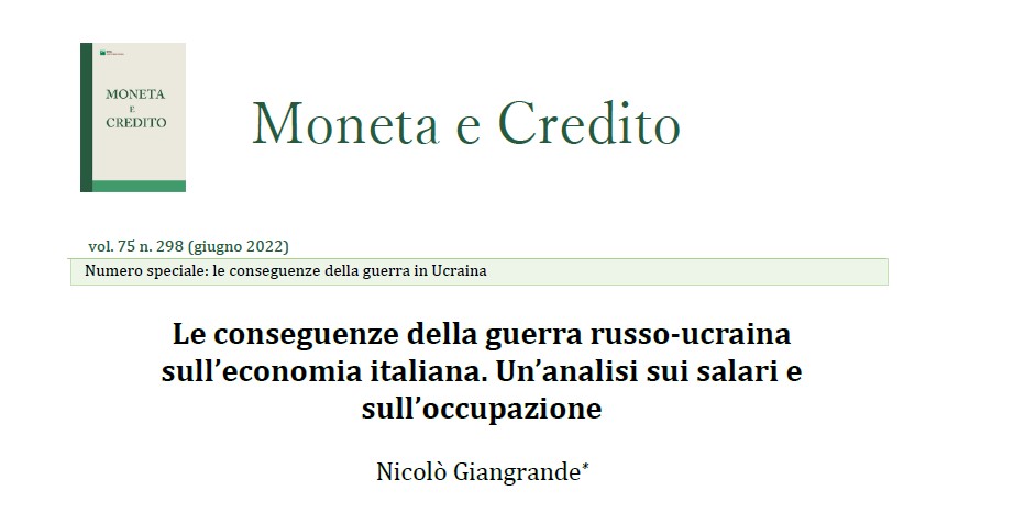 Nel numero speciale della storica e prestigiosa rivista economica "Moneta e Credito", dedicato alle conseguenze della guerra in Ucraina e curato da Roberto Lampa e Nadia Garbellini, è stato pubblicato un articolo di Nicolò Giangrande, ricercatore della Fondazione Di Vittorio.