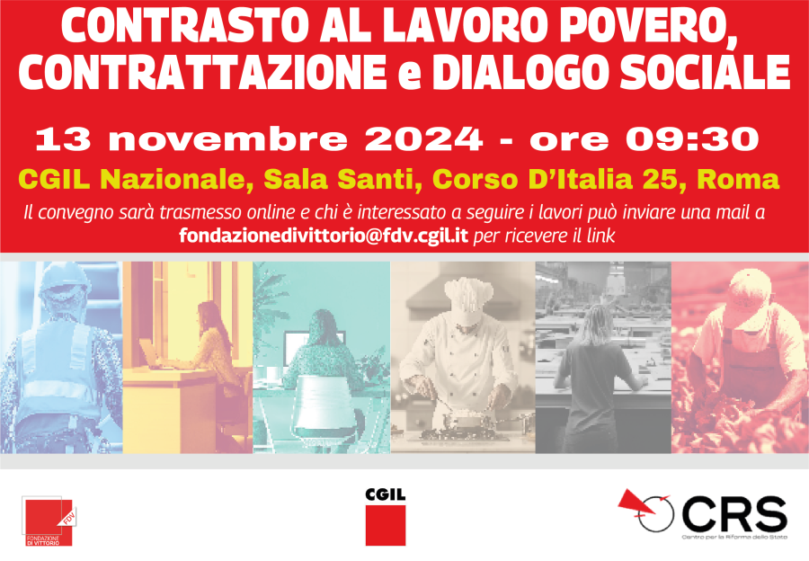 Il progetto “Contrasto al lavoro povero e dialogo sociale” è coordinato dalla Fondazione Giuseppe Di Vittorio e condotto in collaborazione con il Centro di Studi e Iniziative per la Riforma dello Stato (CRS) con un gruppo di ricerca interdisciplinare.