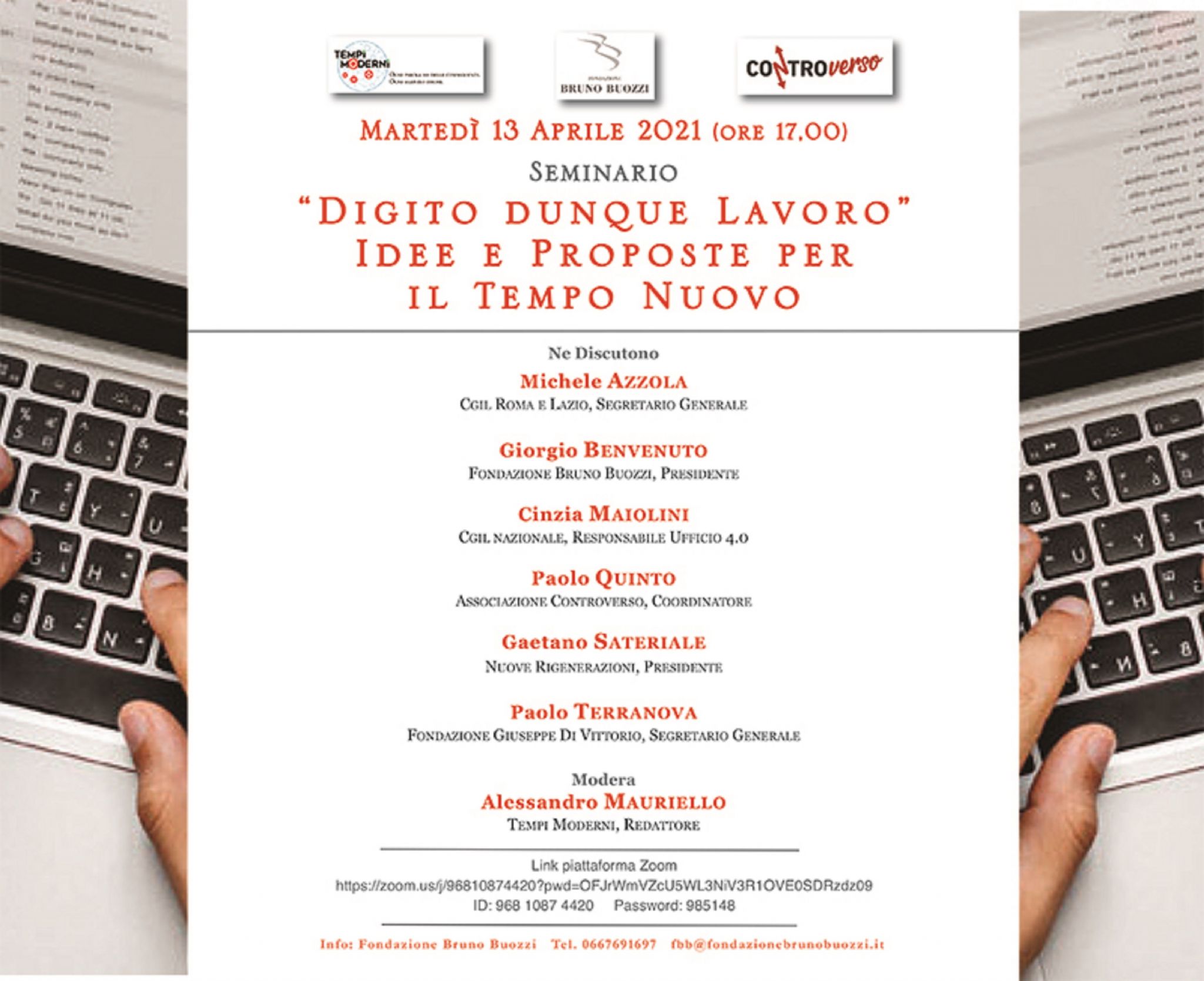 Martedì 13 aprile 2021 alle ore 17.00, si terrà il Seminario "Digito dunque Lavoro" idee e proposte per il tempo nuovo, tramite webinar Zoom.