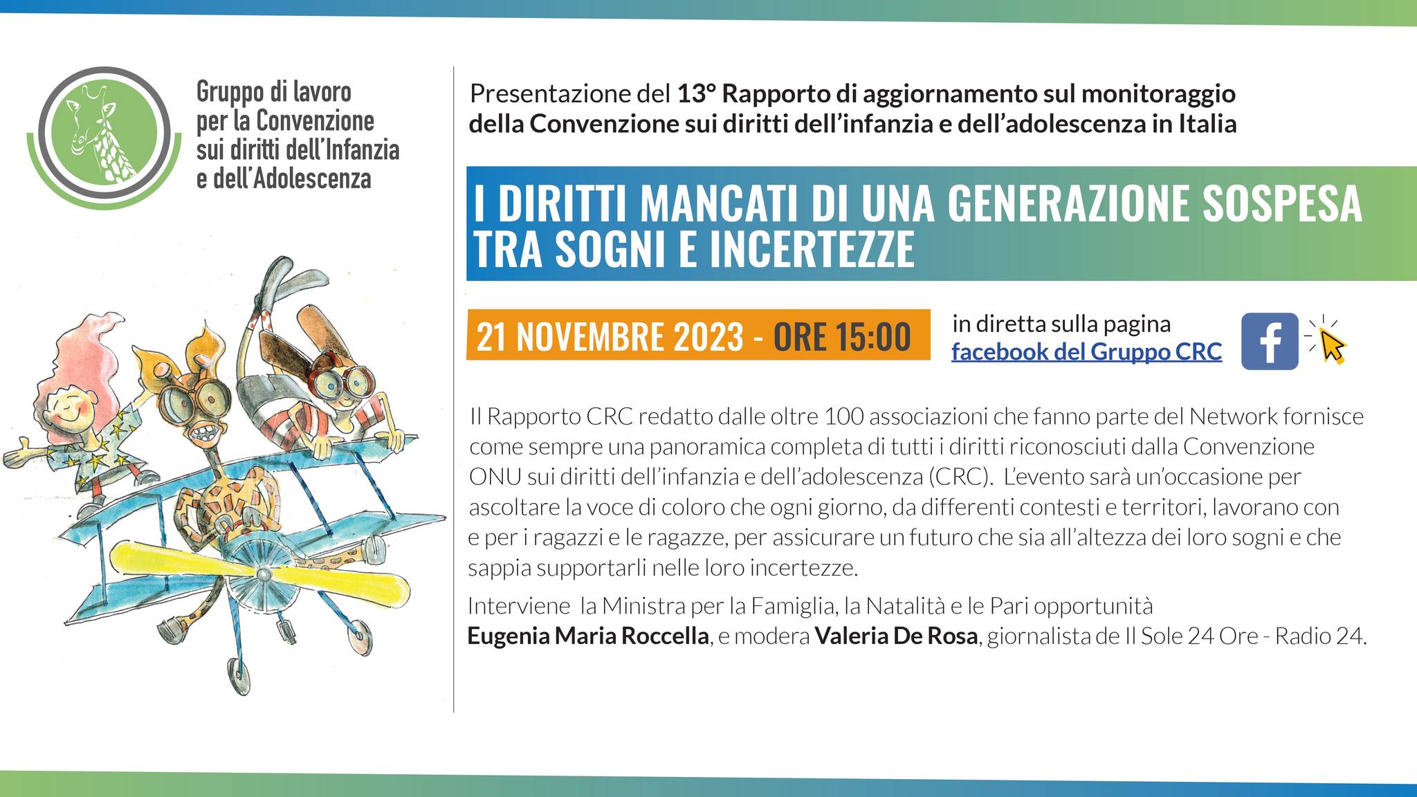 Il gruppo CRC, ossia il Gruppo di lavoro per la Convenzione sui Diritti dell’Infanzia e dell’Adolescenza, ogni anno redige il rapporto che presenta una panoramica completa di tutti i diritti riconosciuti dalla Convenzione ONU sui diritti dell’infanzia e dell’adolescenza.