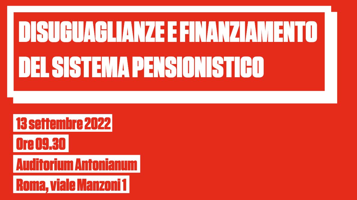 Il dibattito, “Disuguaglianze e finanziamento del sistema pensionistico” si svolgerà a Roma martedì 13 settembre 2022 alle ore 9.30, presso l’Auditorium Antonianum (Viale Manzoni, 1).