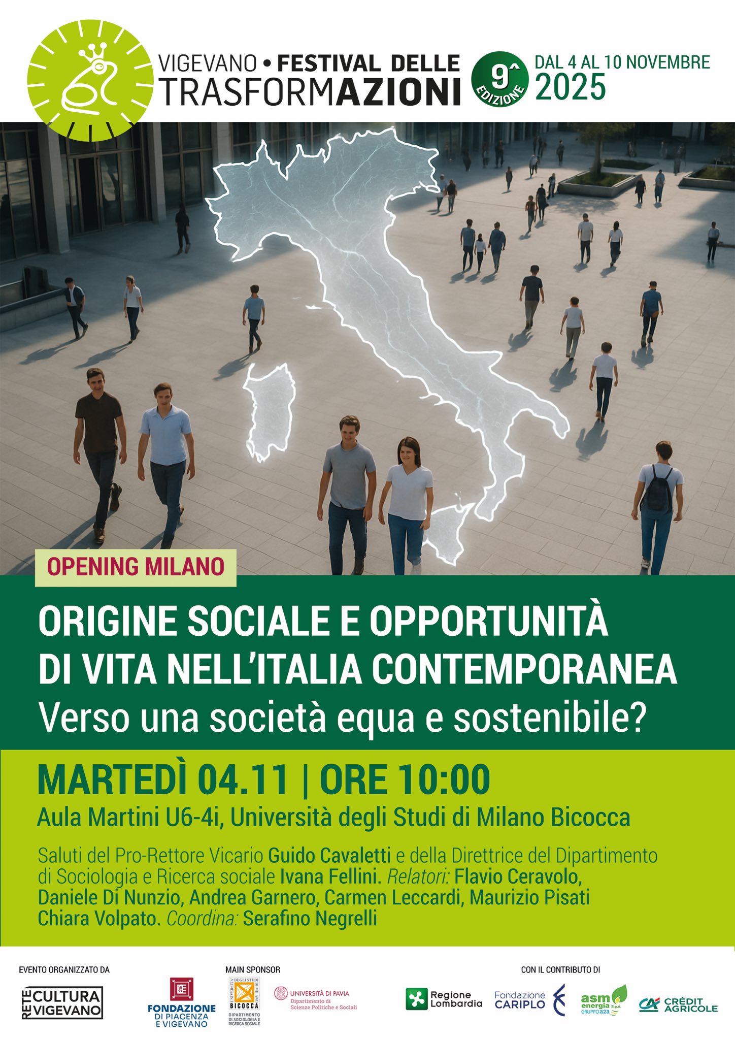Il 4 novembre, un convegno affronterà il temaOrigine sociale e opportunità di vita nell'Italia contemporanea, presso l’Università degli Studi di Milano Bicocca, con il coordinamento di Serafino Negrelli (direttore scientifico del Festival).