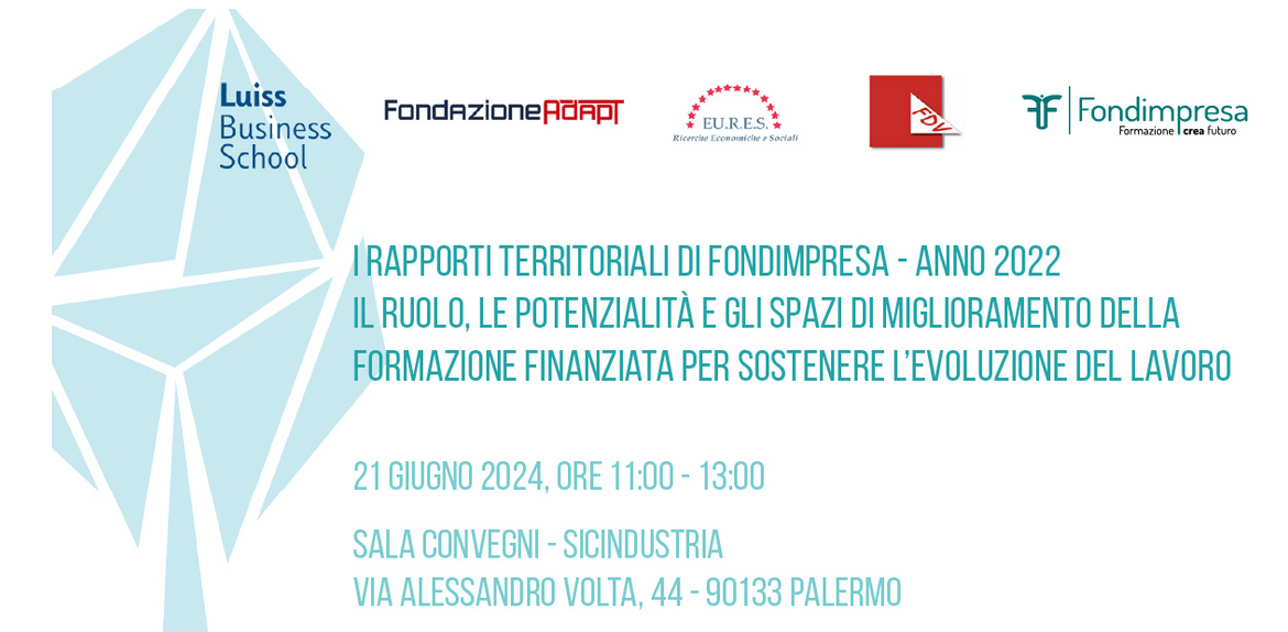 L’evento si colloca nell’ambito del progetto di Ricerca curato da Fondimpresa insieme a Luiss Business School, Fondazione ADAPT, EU.R.E.S. Ricerche Economiche e Sociali e Fondazione Giuseppe Di Vittorio.
