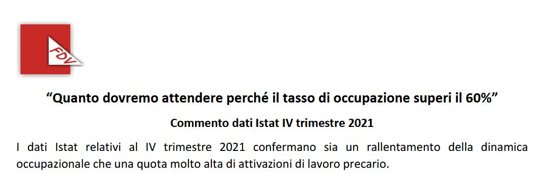 I dati Istat relativi al IV trimestre 2021 confermano sia un rallentamento della dinamica occupazionale che una quota molto alta di attivazioni di lavoro precario.