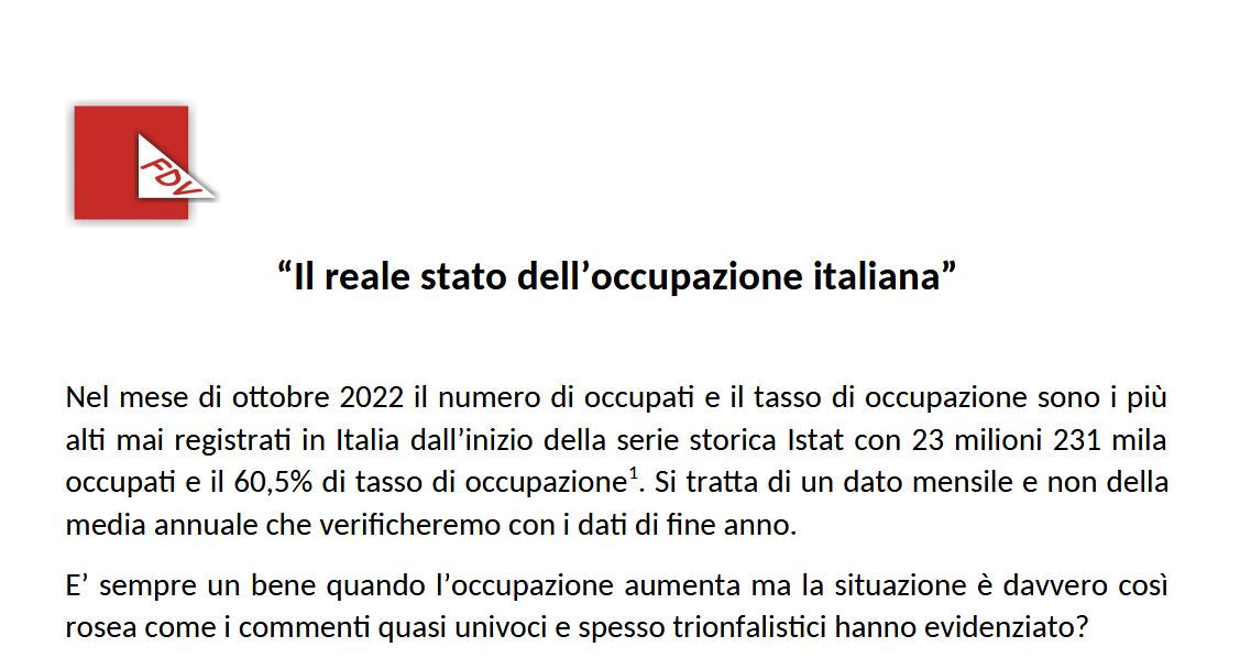Il reale stato dell’occupazione italiana