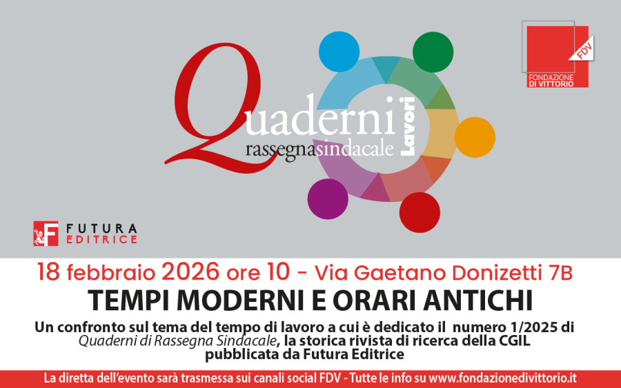 Si è svolto il giorno 18 febbraio presso la Fondazione Di Vittorio, e in diretta sui canali social FDV, un confronto tra studiosi/e sul tema del tempo di lavoro a cui è dedicato il numero 1/2025 di Quaderni di Rassegna Sindacale, la storica rivista di ricerca della CGIL pubblicata da Futura Editrice.