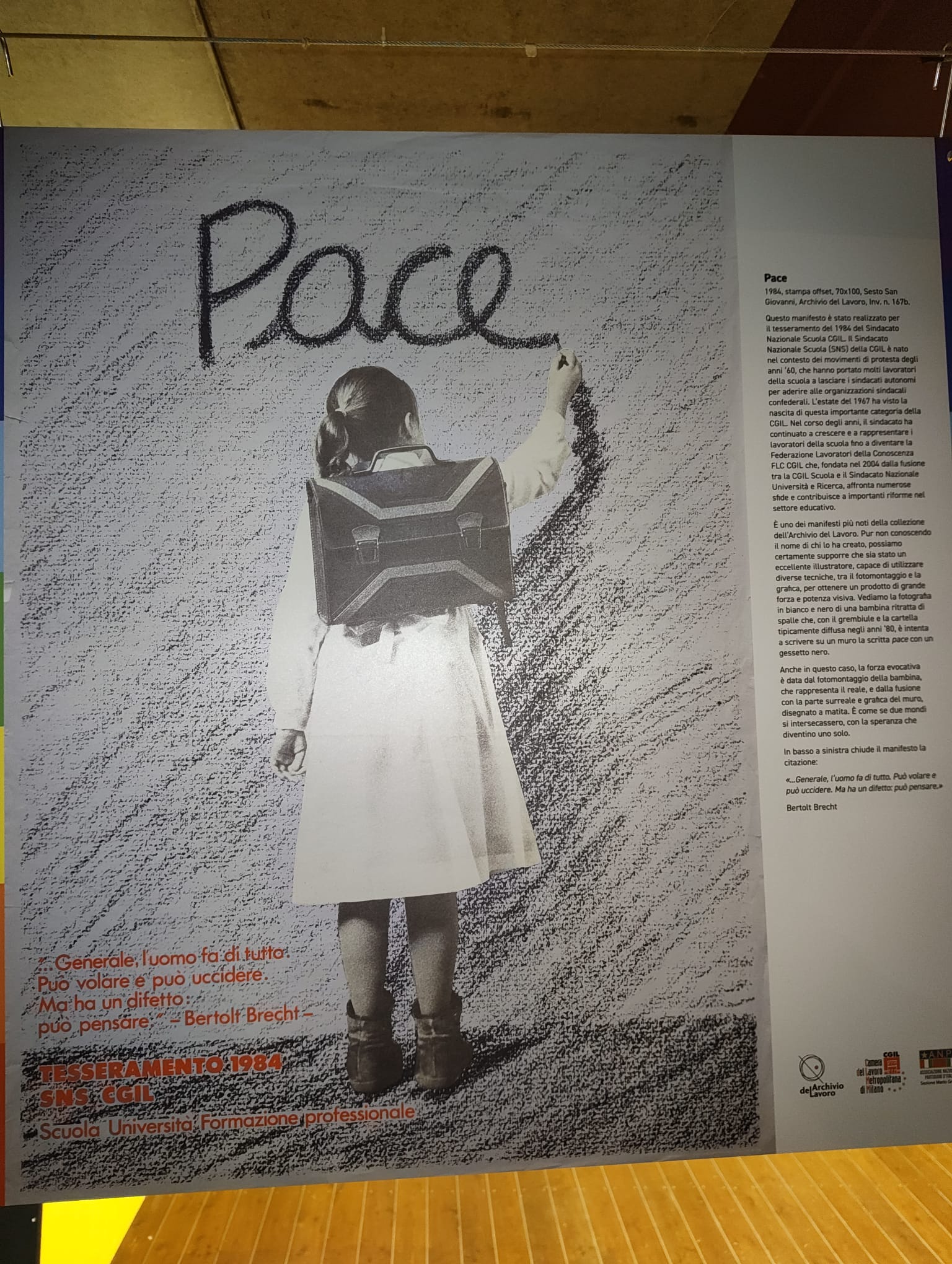 Genova la città che quest'anno è stata scelta per ospitare le iniziative che rientrano nella Settimana nazionale degli Archivi storici Cgil. Oggi e domani, 11 e 12 novembre, si terranno in città incontri con le scuole, seminari monotematici, la mostra dei manifesti Cgil sulla pace e il disarmo conservati presso l’Archivio storico della Camera del Lavoro di Milano “La pace sui muri” (v. foto in basso) allestita ai Giardini Luzzati ad ingresso gratuito e il convegno pubblico di mercoledì 12 “Lavoro, Resistenza, Costituzione: le radici e l’attualità dell’identità della Repubblica”. Il convegno sarà trasmesso on line sul canale YT della Fondazione Di Vittorio.