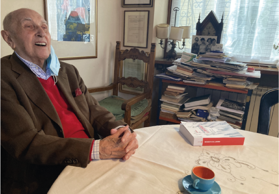 “Tempi moderni. Ma che cosa tiene insieme questa società? La comunicazione, ma è una comunicazione elettronica, strettamente autoreferenziale. Esclude, elimina l'altro, elimina il linguaggio del corpo, elimina l'opera, elimina il gesto. Elimina l'amore. Quindi siamo in presenza di un mondo che tende a far valere, anzi a far prevalere, la razionalità formale, burocratica, fittizia, sulla razionalità sostanziale. Perché abbiamo commesso un grave errore, abbiamo confuso i valori strumentali con i valori finali. Ma quali sono i valori finali? Uno solo, l'uomo. Mai come strumento, solo come progetto. Peccato. Tuttavia, a questo punto evidentemente sorge, voi lo sapete meglio di me, un compito nuovo per i sindacati. Sempre sulla scia di Di Vittorio, che predicava la centralità della conoscenza, ma anche dei professori, della scuola, della formazione. Non essendoci la formazione, c'è il social, la grande comunicazione democratica delle stupidità. Giordano Bruno, se fosse ancora fra noi, riscriverebbe il nuovo Spaccio del bestione trionfante. E qualcun altro dovrebbe scrivere il nuovo Leviatano però. Io aspetto con ansia che sorgano intellettuali di tipo nuovo, che non sono quelli che scrivono i messaggi, gli interventi, le recensioni, per essere eternati. Adesso c'è qualcosa d’altro, tutto è cambiato. Siamo in presenza di una straordinaria se si vuole anche potenzialmente rivoluzionaria, potenzialmente rivoluzionaria epoca, una nuova epoca, che sarebbe addirittura post-comunista, post-marxista, post-tutto quanto”. Ed è a questo punto che l’analisi filosofica di Franco Ferrarotti diventa un vero e proprio allarme sulle forme che può assumere il neo-totalitarismo, nella sua coincidenza con il potere della tecnica che esclude la ragione sostanziale e il valore sociale del lavoro.