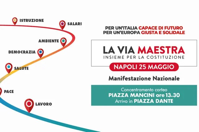 ‘La Via Maestra’, composta da 160 organizzazioni e associazioni, tra cui la Cgil, sarà di nuovo in piazza a Napoli il 25 maggio “per un’Italia capace di futuro, per un’Europa giusta e solidale”.